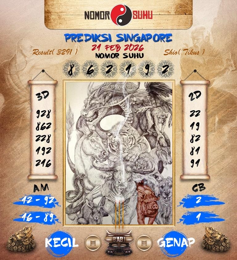 Hallo sahabat lovers, Kami akan memberikan informasi bocoran Prediksi Syair Singapura. Tidak perlu ditanyakan lagi pasaran togel yang satu ini, karena ini merupakan pasaran nomor 1 bagi pemain togel yang ada di dunia togel. Siapa yang tidak mengetahui pasaran singapore? Pemain togel tentunya tidak akan pernah melewatkannya.